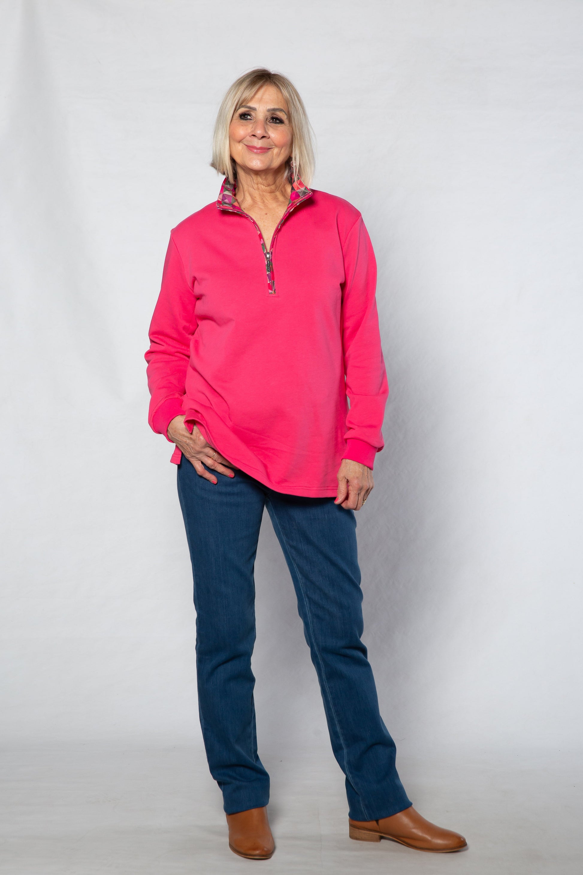Contrast trim 1/2 zip French terry rugby #1246 - PINK