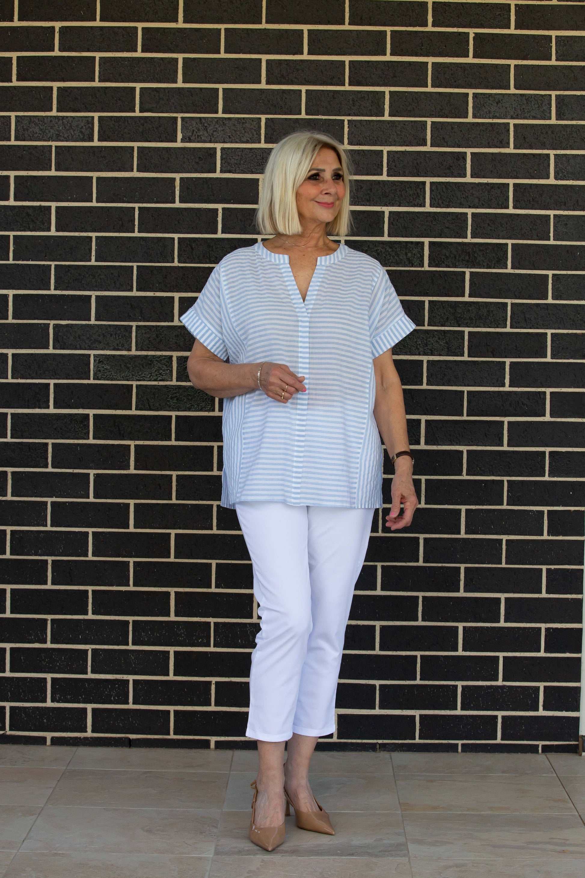 Style suggestions: Pair with our linen blend relaxed pants (model wears with White #6720)