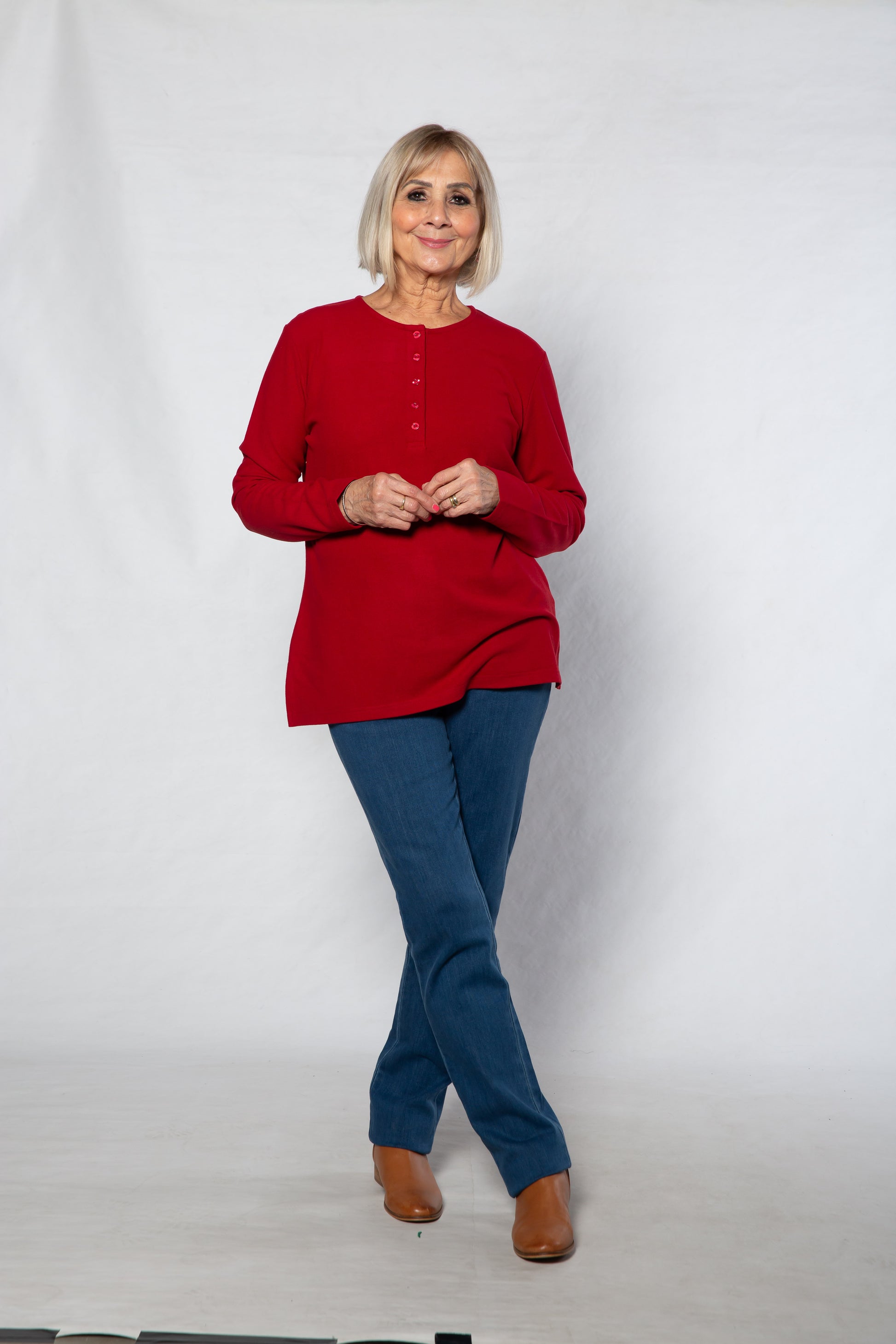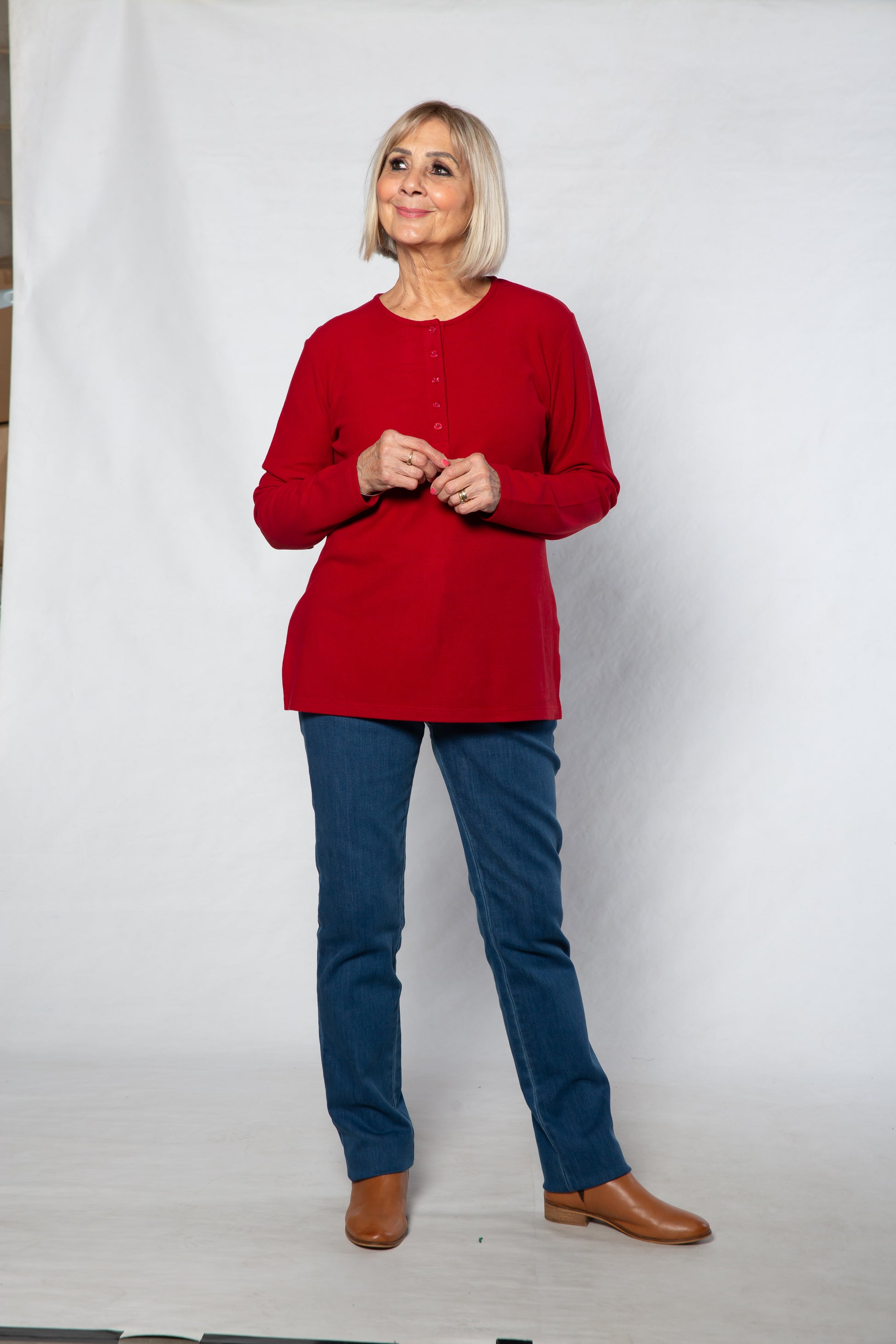 Henley Long sleeve stretch crew neck top #209 Red
