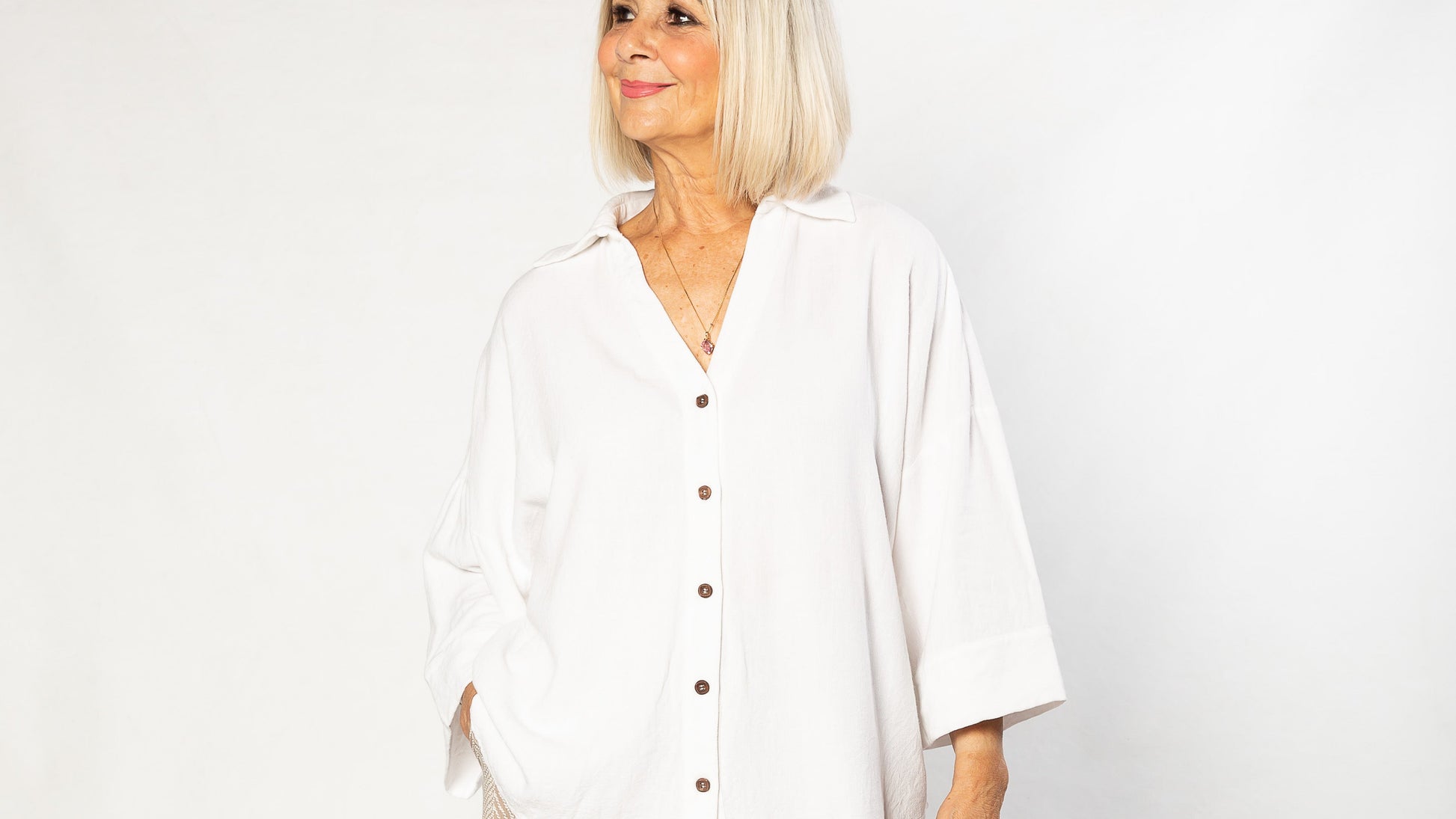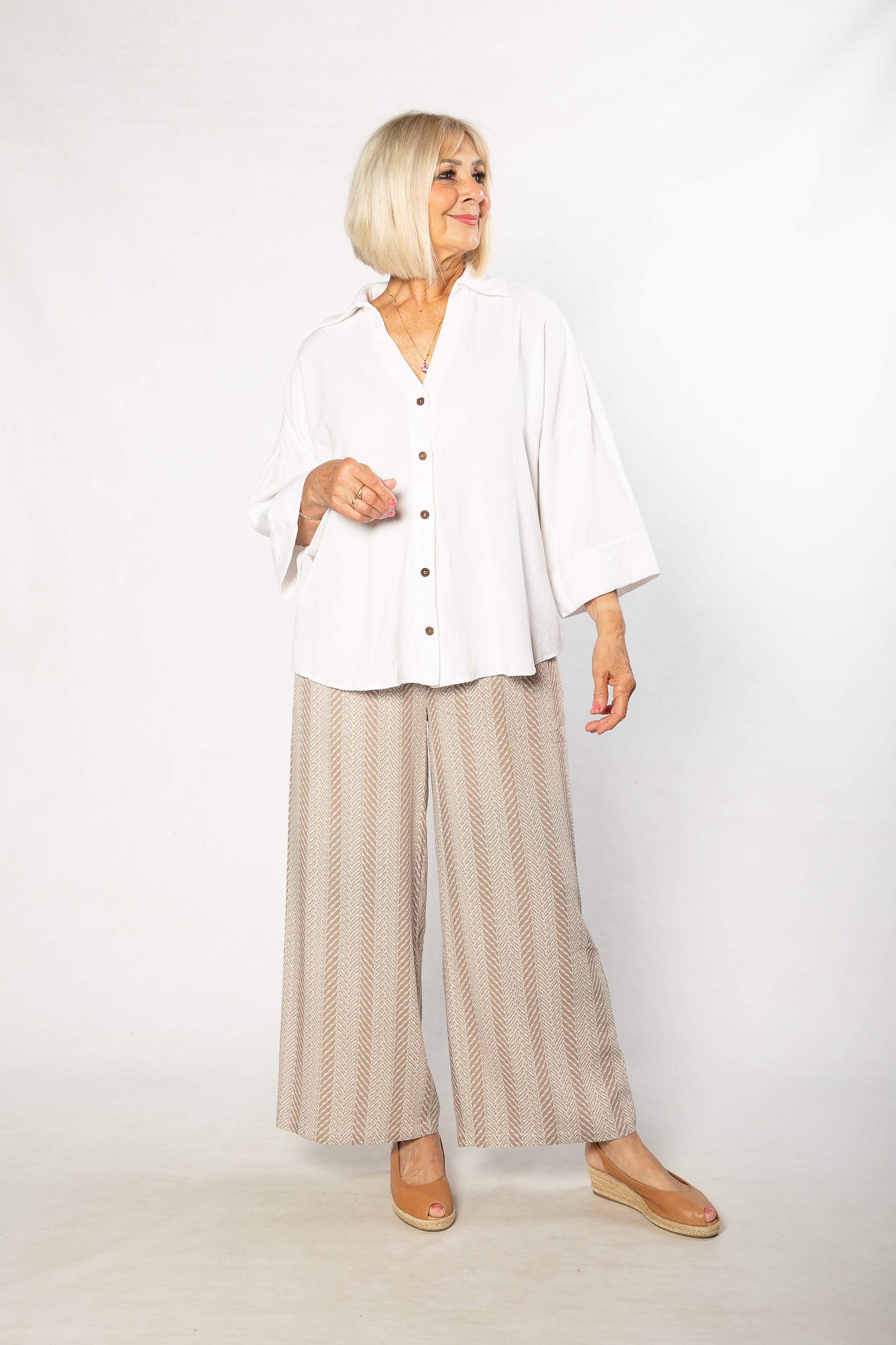 Herringbone Print Wide Leg Pant with Pockets #6659 - Natural