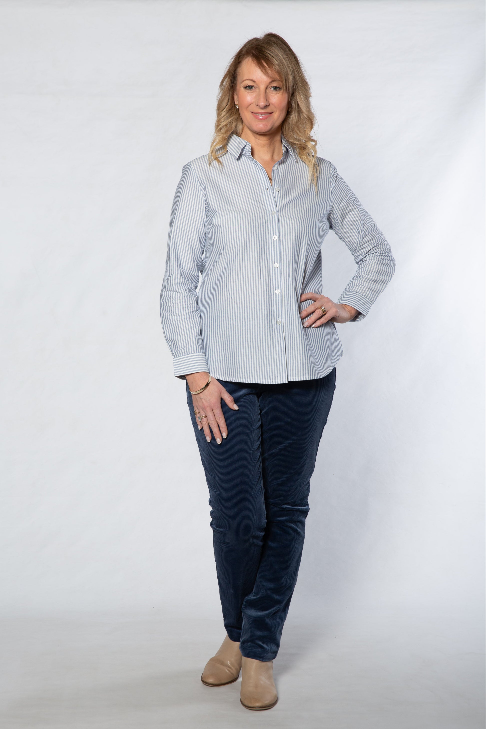 Cotton Long sleeve stripe shirt #3086 - Blue