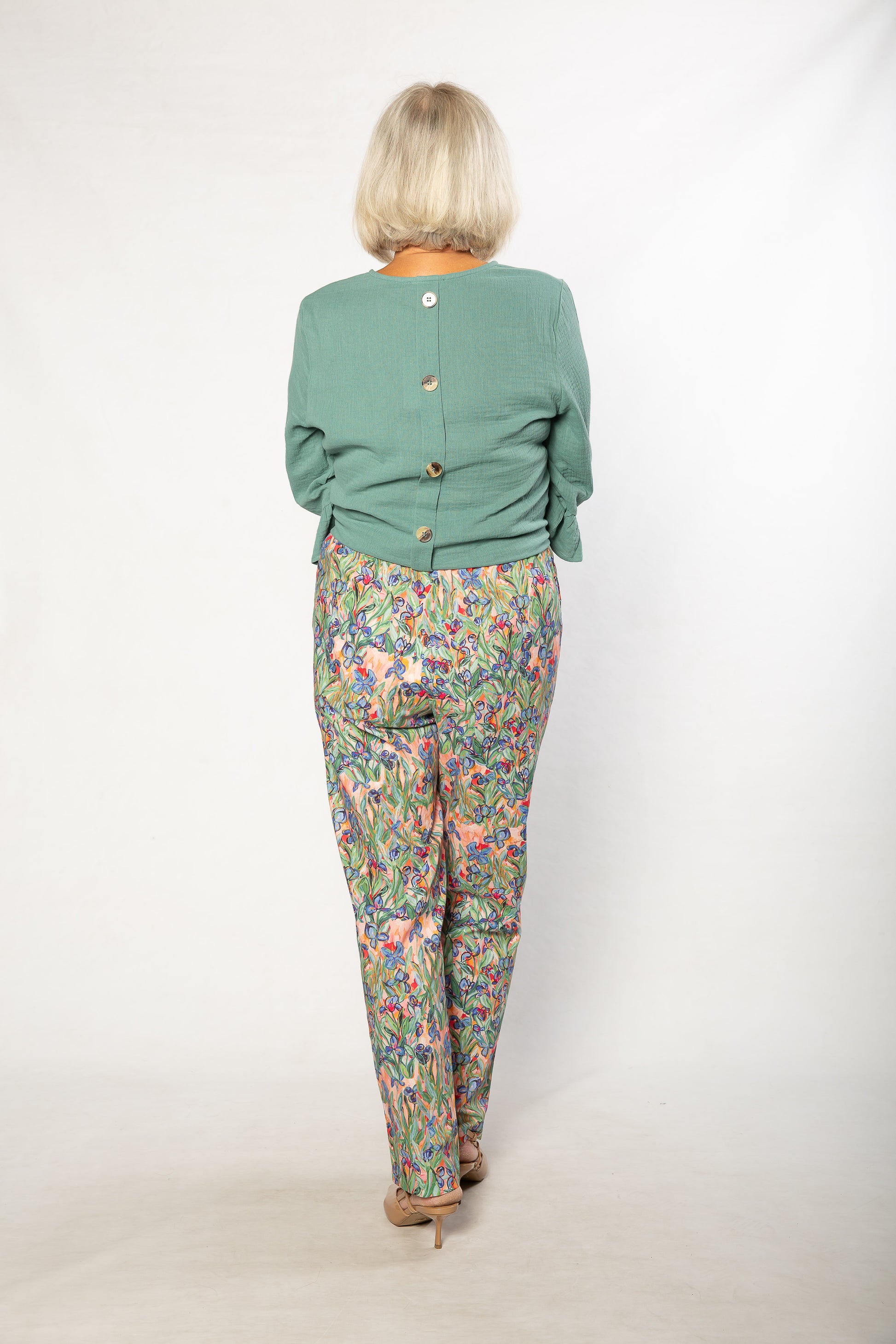 Pure Cotton Iris Print pants with slant pockets and Elastic waist #6605 Iris