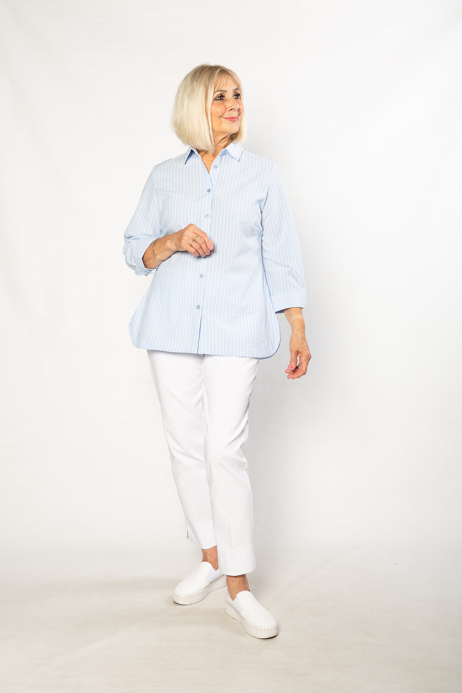 Relaxed Stripe 100% Cotton 3/4 sleeve Shirt #3360 Blue