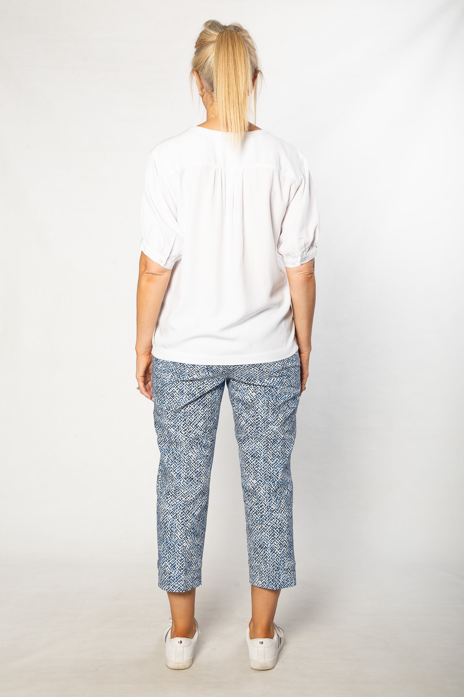 Soft Tencel Blend Pop Over Top with Fagotting Detail #515 White