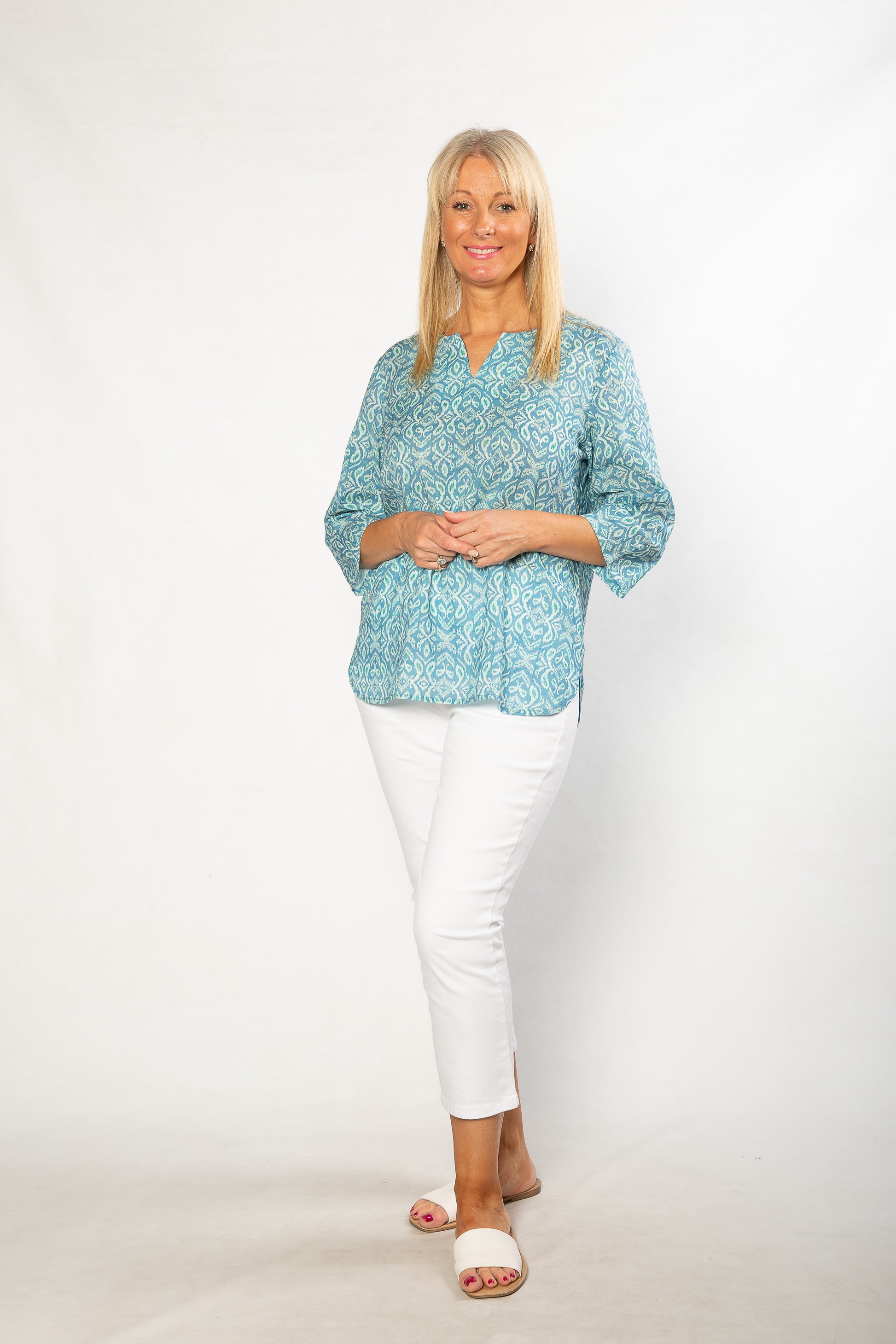 100% Cotton Ikat Printed Tunic 3/4 sleeve Top #539