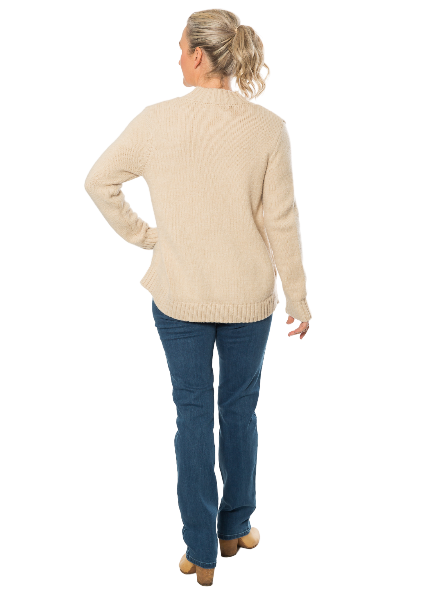 Mock Turtle Neck Cable Sweater #5622 Natural